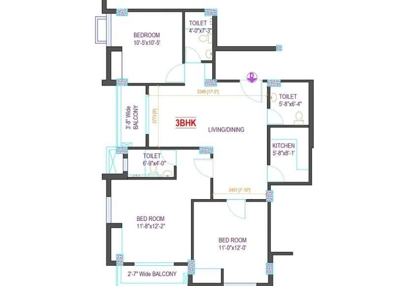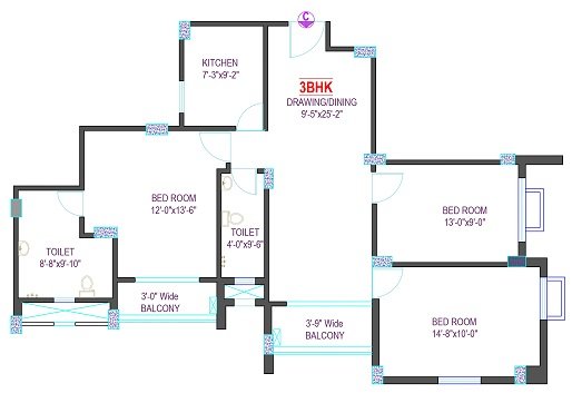 This 2BHK layout is intelligently designed to offer spacious living, functional movement, and excellent natural ventilation throughout the home. At the core of the unit lies the expansive Drawing/Dining area (15′-6″ × 12′-9″), providing a welcoming central space that connects seamlessly to both bedrooms, the kitchen, and other facilities.
