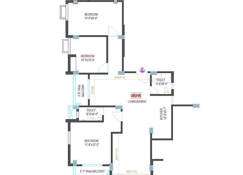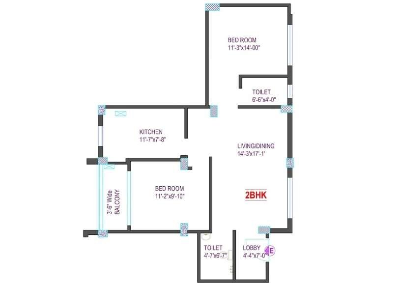 This 2BHK apartment layout provides an efficient and comfortable living arrangement suitable for small families. It includes two well-planned bedrooms, sized 9′-5″ × 10′-2″ and 9′-10″ × 10′-0″, offering ample space for beds, wardrobes, and essential furniture. The centerpiece of the home is the spacious drawing/dining hall (14′-2″ × 20′-1″), designed to accommodate both living and dining setups with ease. The apartment features two separate toilets, ensuring convenience and privacy for all residents.