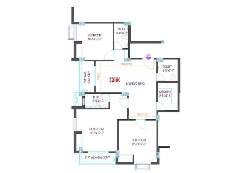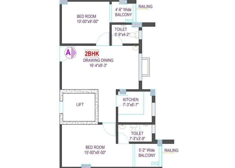 The typical floor plan features a well-balanced mix of 2BHK and 3BHK units, thoughtfully arranged around a central courtyard to maximize ventilation and natural light. Each apartment includes spacious bedrooms, functional kitchens, and attached balconies that enhance comfort and airflow.