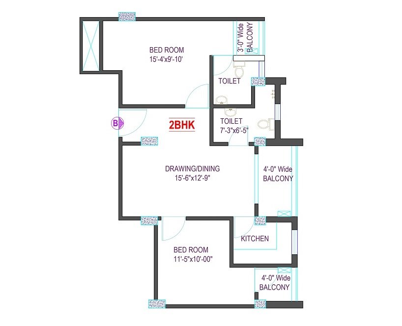 Typical Floor Plan – 2BHK Residential Unit Overview (Flat–B, 4th Floor)