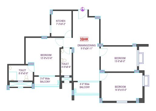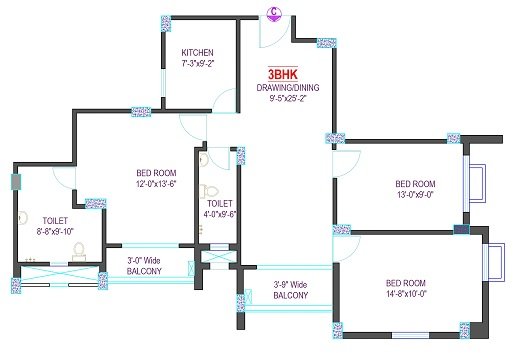 This 3BHK apartment is thoughtfully laid out to maximize comfort within its efficient floor plan.