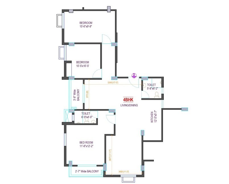 Typical Floor Plan – 3BHK Residential Unit Overview (Flat–D, 4th Floor)