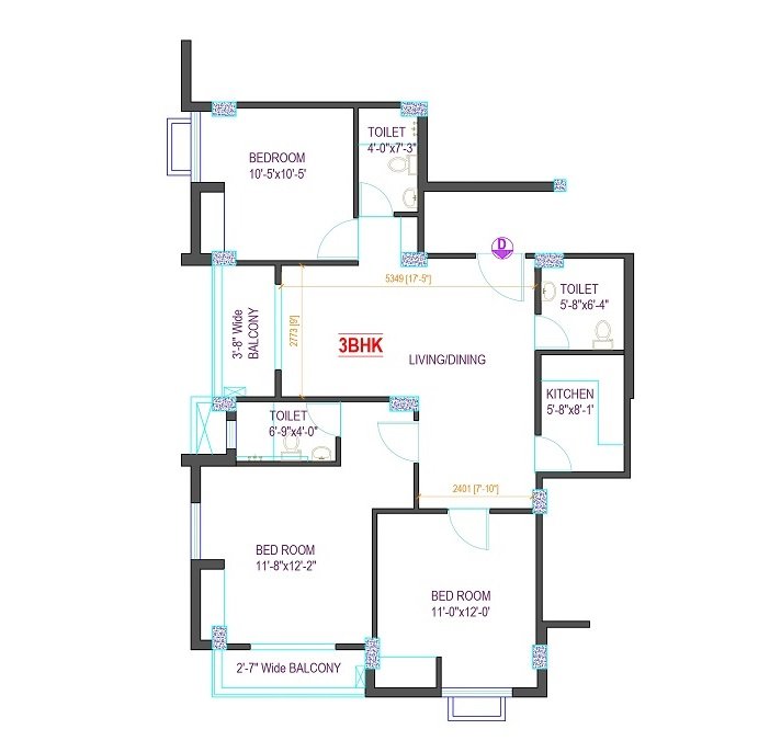 Typical Floor Plan – 3BHK Residential Unit Overview (Flat–D, 3rd Floor)